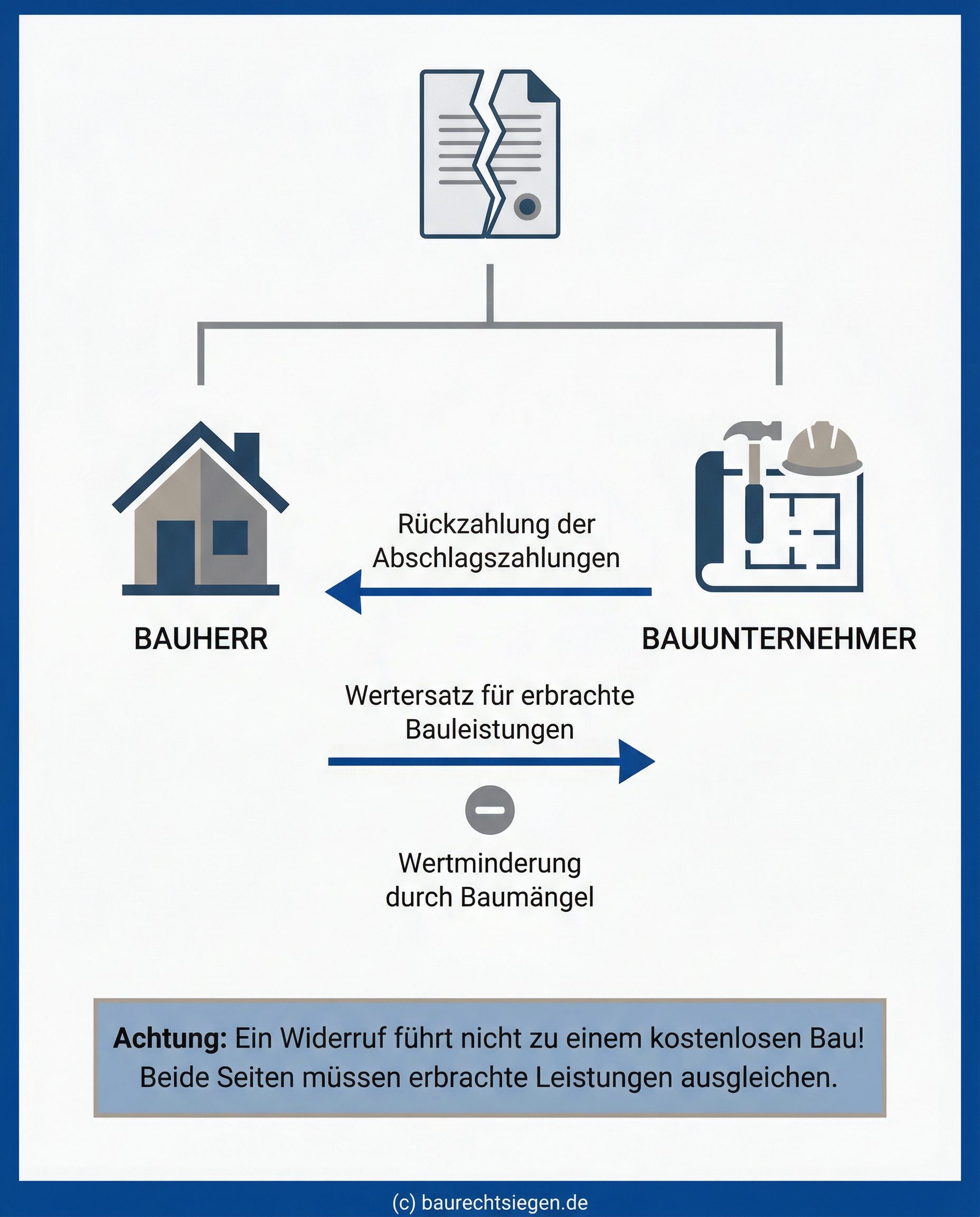 - Nach einem Widerruf muss der Bauherr bereits gezahlte Beträge vom Unternehmer zurückfordern.
